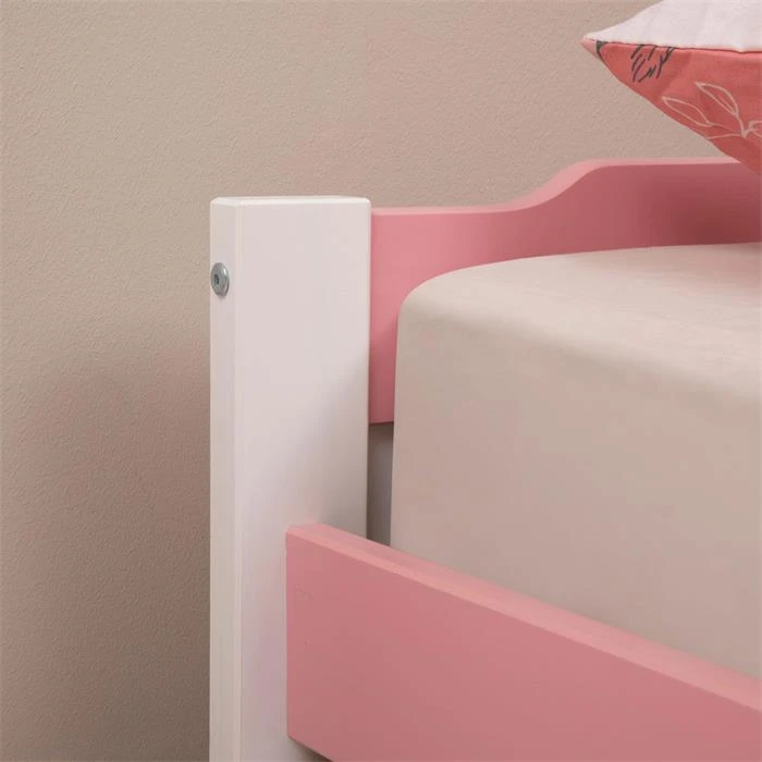 Ausziehbett LORENA 90×190 Cm, Kiefer In Weiß/rosa