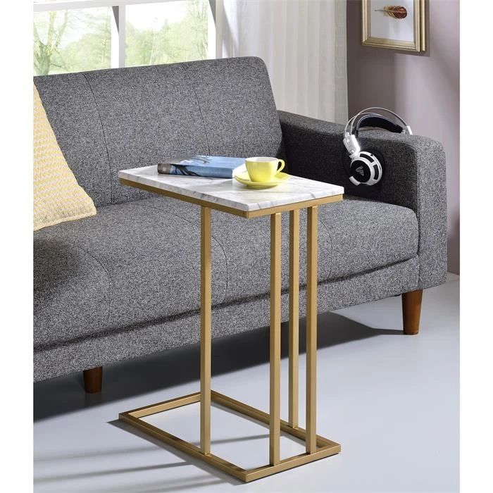 Beistelltisch CARLOTA Rechteckig Gold/Marmor Weiß