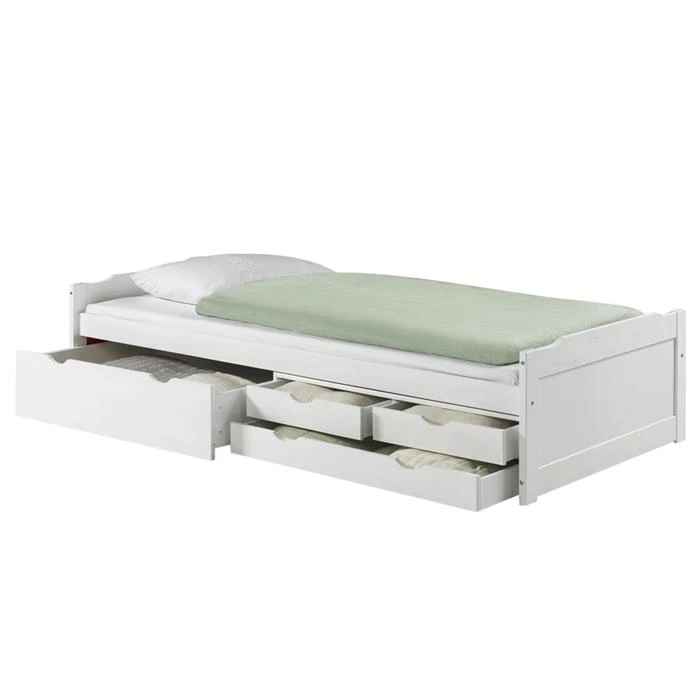 Bett Mit Stauraum ANDREA 90 X200 Cm Aus Kiefer In Weiss