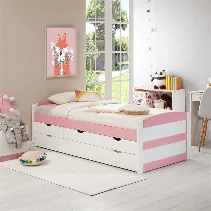 Bett Mit Stauraum JESSY 90×190 Cm, Mit Ausziehbett In Weiß/rosa
