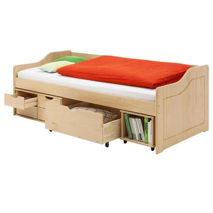 Bett Mit Stauraum SENTA 90×200 Cm, Kiefer Massiv Buchefarben