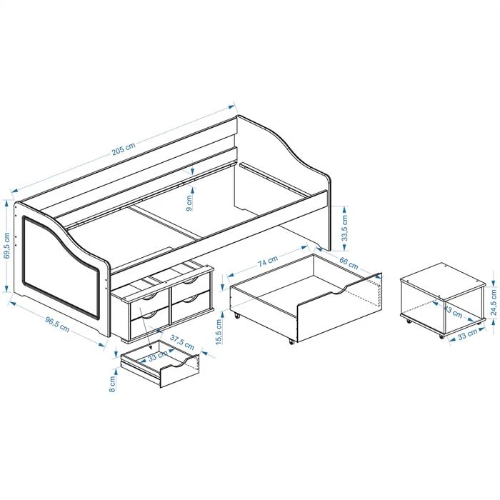 - Stellmaß: 98 x 63 x 205 cm (B x H x L)