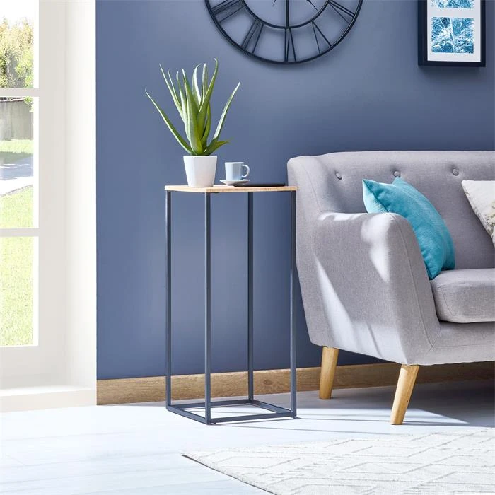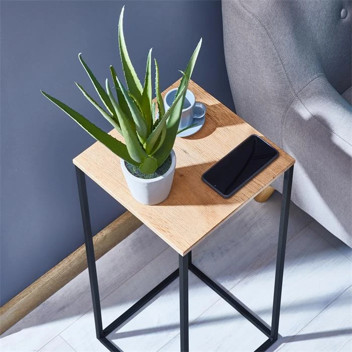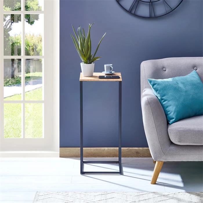 Blumenständer FLORA Aus Metall Tischplatte In Wildeiche