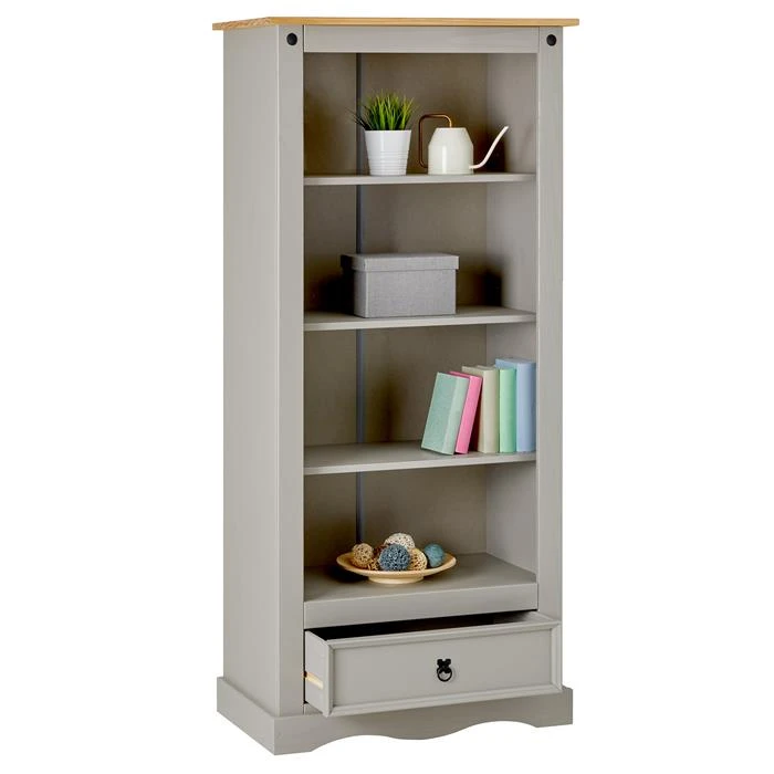 Bücherschrank TEQUILA, Kiefer Massiv Grau/braun, Mexiko