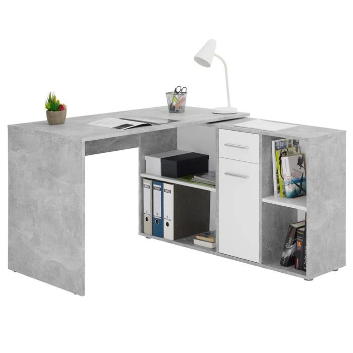 Eckschreibtisch DIEGO Mit Regal In Betonoptik/weiß