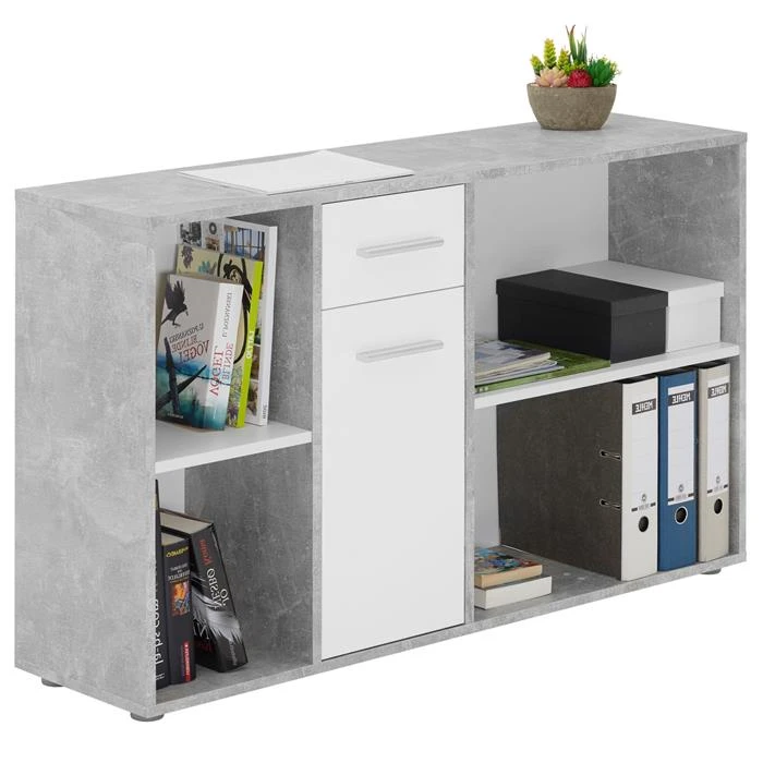 - 4 offene Fächer, 1 Schublade und 1 Tür