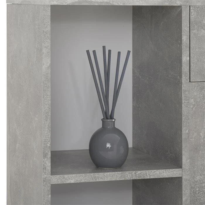- 4 offene Fächer, 1 Schublade und 1 Tür