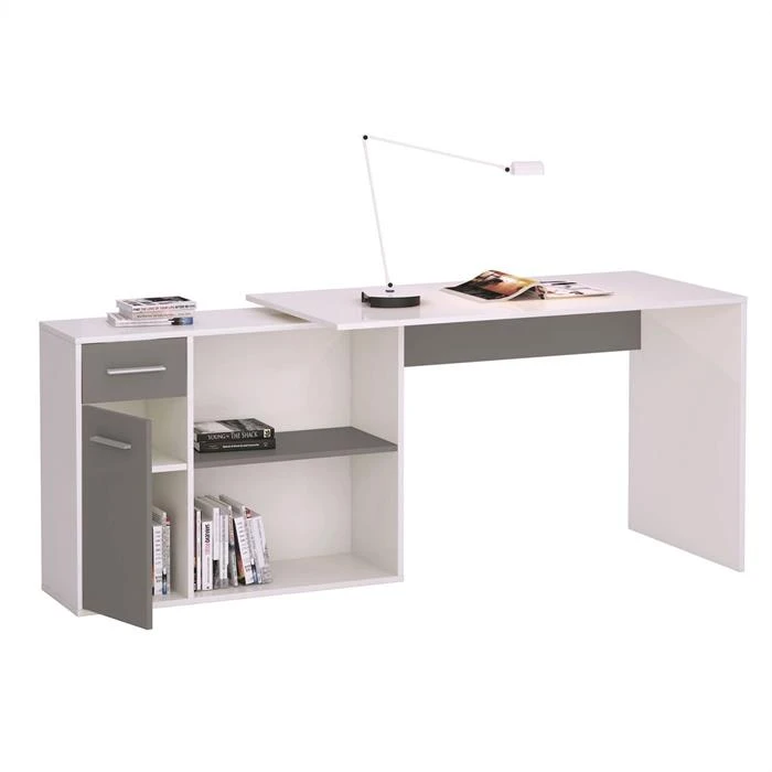 Eckschreibtisch LENA In Weiß/grau Mit Regal