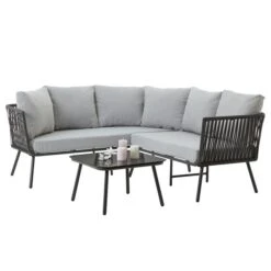 Gartenmöbel Set JAKARTA Mit Seilbespannung Und Polster In Grau