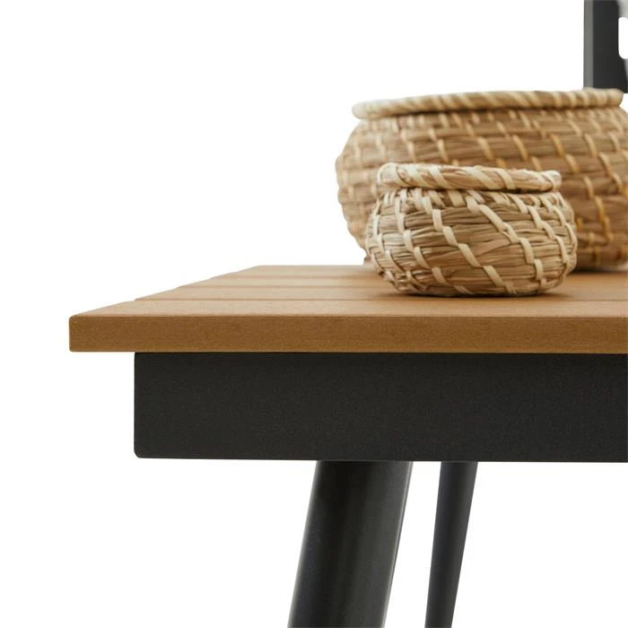 - Tischoberfläche: Kunststoff in Holzoptik