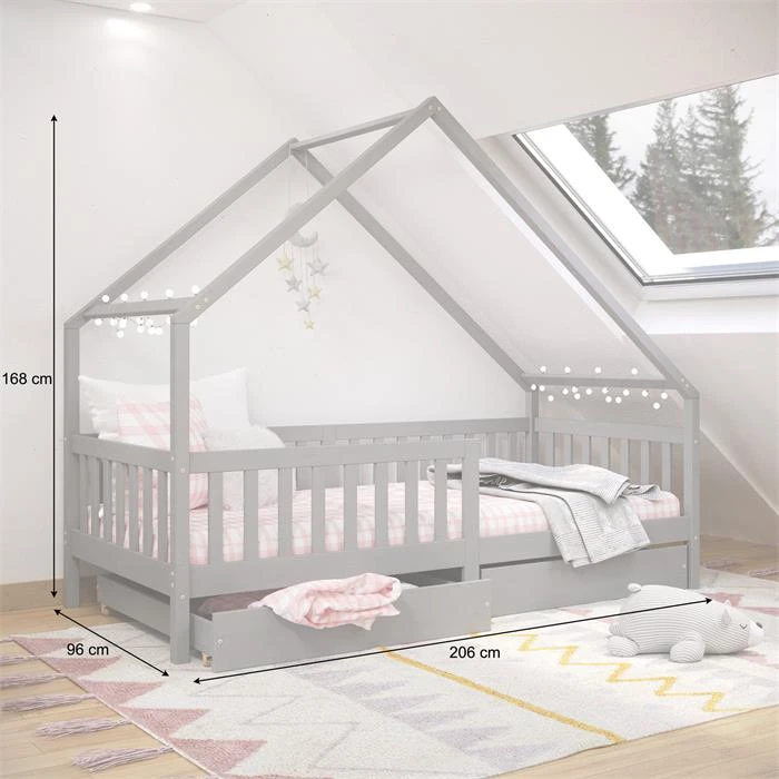 Hausbett ALVA In 90 X 200 Cm Aus Massiver Kiefer Mit Schubladen In Grau