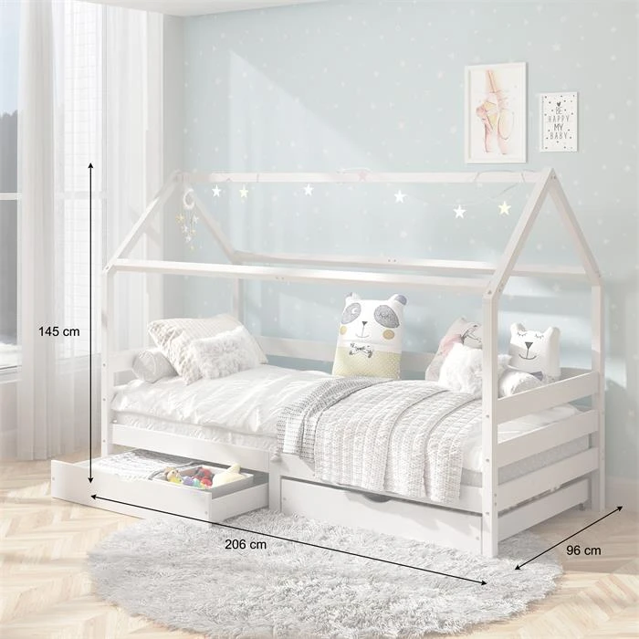 Hausbett CLIA In 90 X 200 Cm Aus Massiver Kiefer Mit 2 Schubladen In Weiß