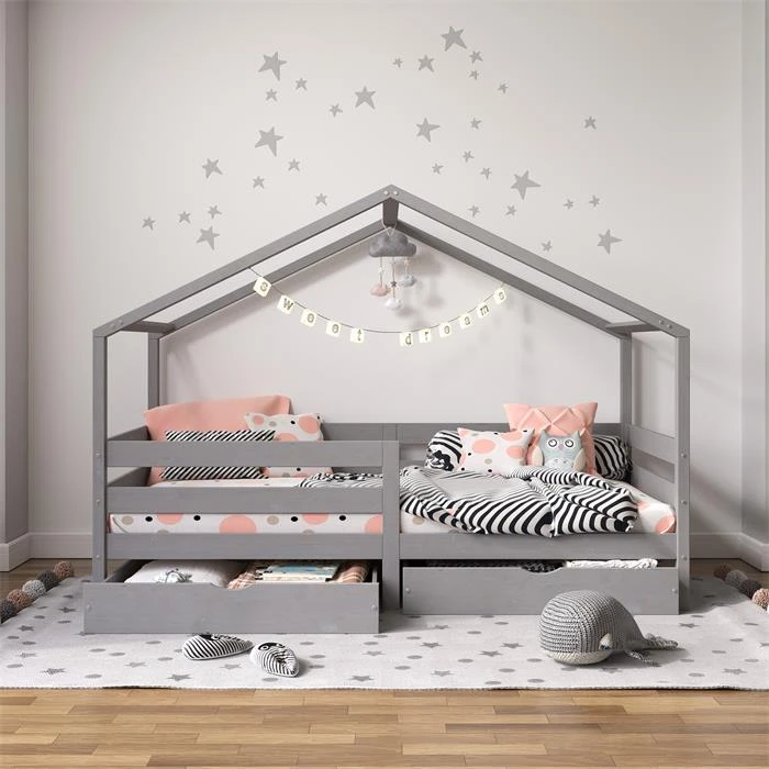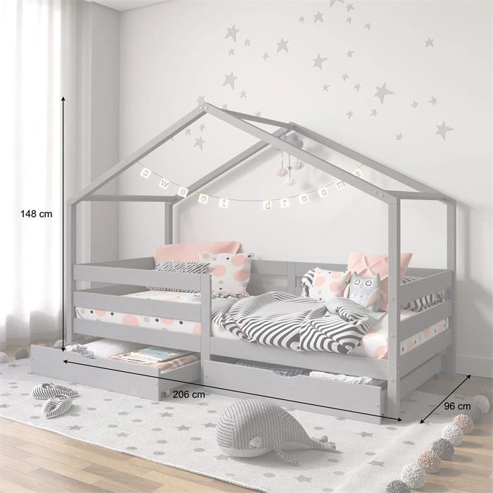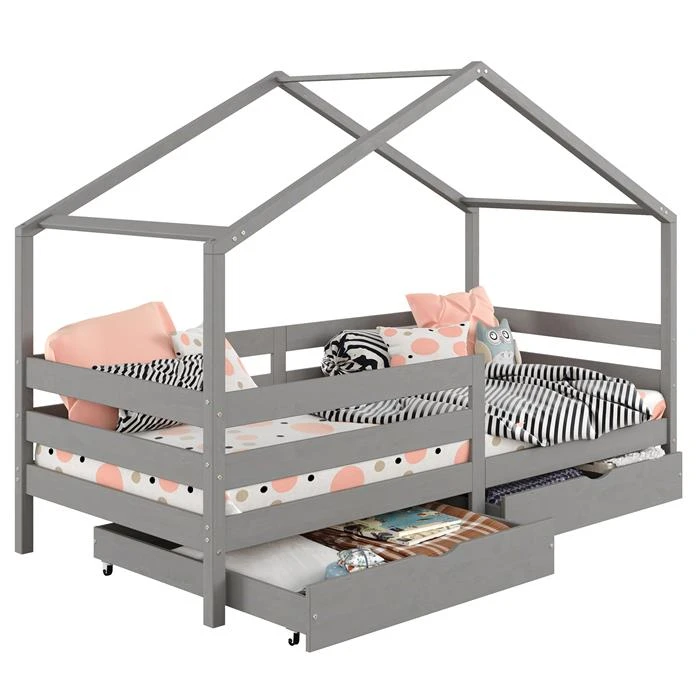 Hausbett ENA 90 X 200 Cm Mit Rausfallschutz Und Zwei Schubladen In Grau