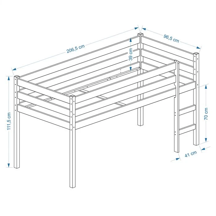- Aufbaumaße Hochbett: 96,5 x 111,5 x 206,5 cm (B x H x L)