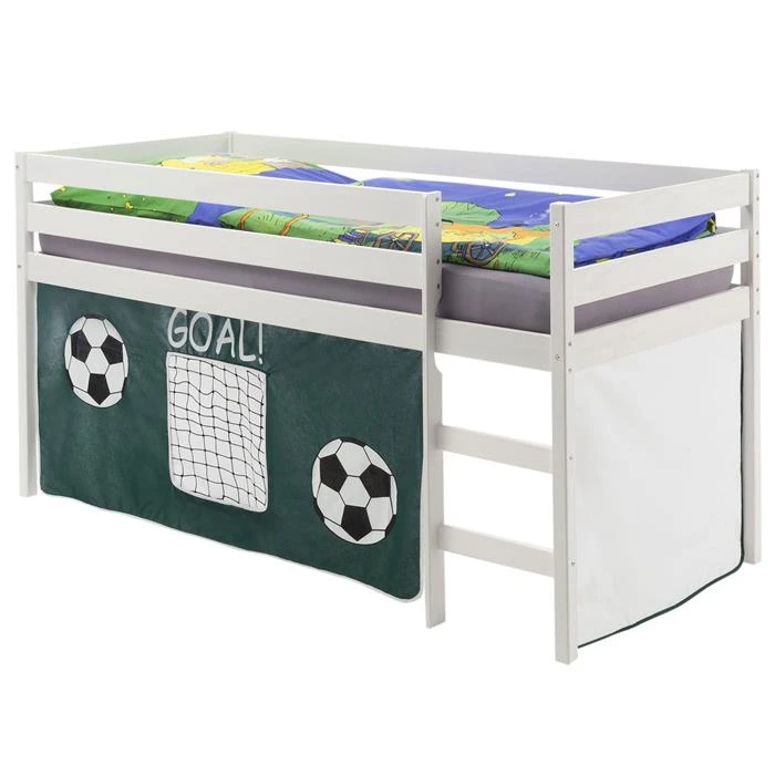 Hochbett ERIK In Weiß Mit Vorhang Fussball
