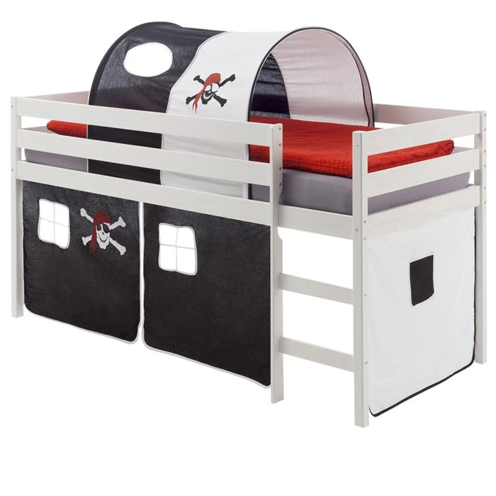 Hochbett ERIK Vorhang & Tunnel Pirat, Weiß
