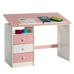 Kinderschreibtisch KEVIN Neigungsverstellbar Weiß/rosa