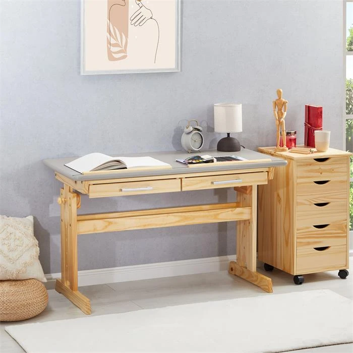 Kinderschreibtisch OLIVIA Aus Kiefer Mit Schubladen In Natur/grau