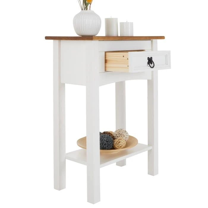 Konsolentisch CAMPO Kiefer Massiv Mit 1 Schublade, Weiß/braun