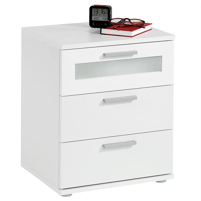 Nachttisch MARY Weiß Mit Glaseinsatz