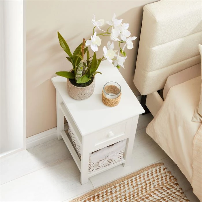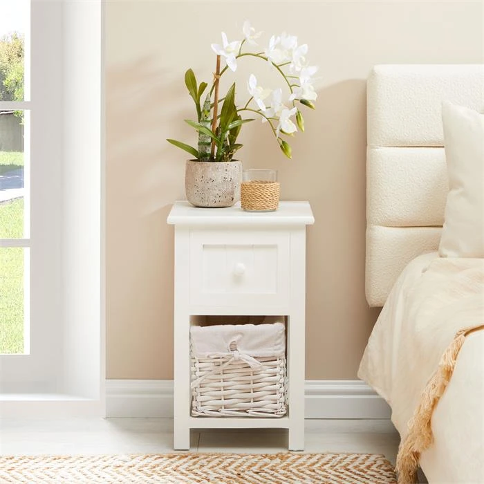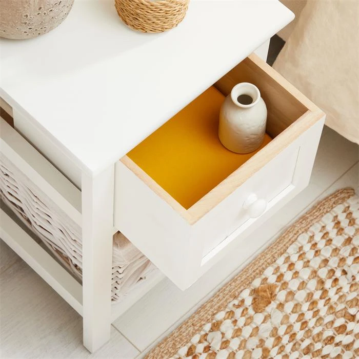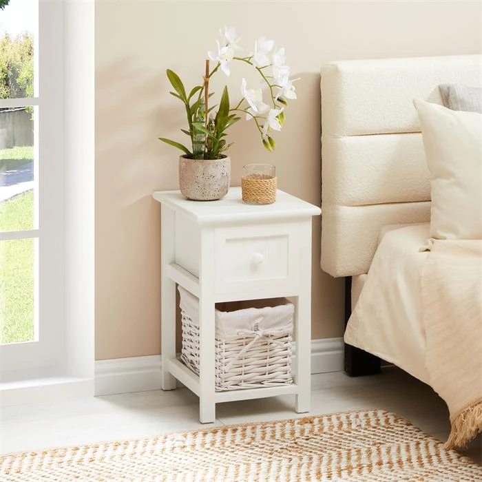 Nachttisch MESSINA Im 2er Set, Mit 1 Schublade Und Korb, In Weiß