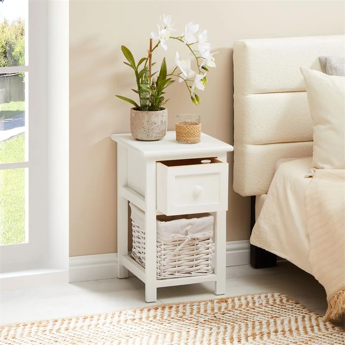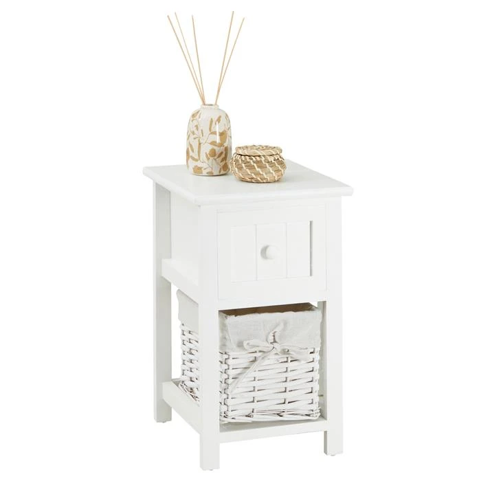 Nachttisch MESSINA Mit 1 Schublade Und Korb, In Weiß