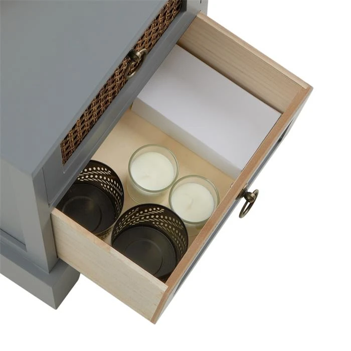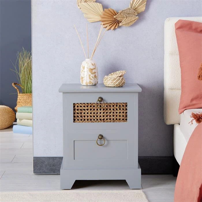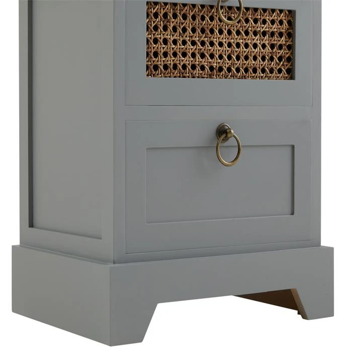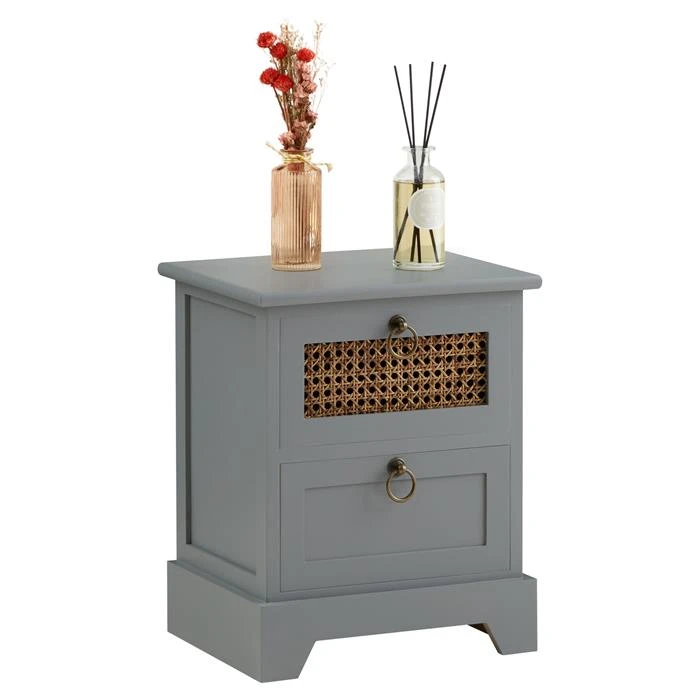 Nachttisch PADMA Mit 2 Schubladen Und Wiener Geflecht, Grau