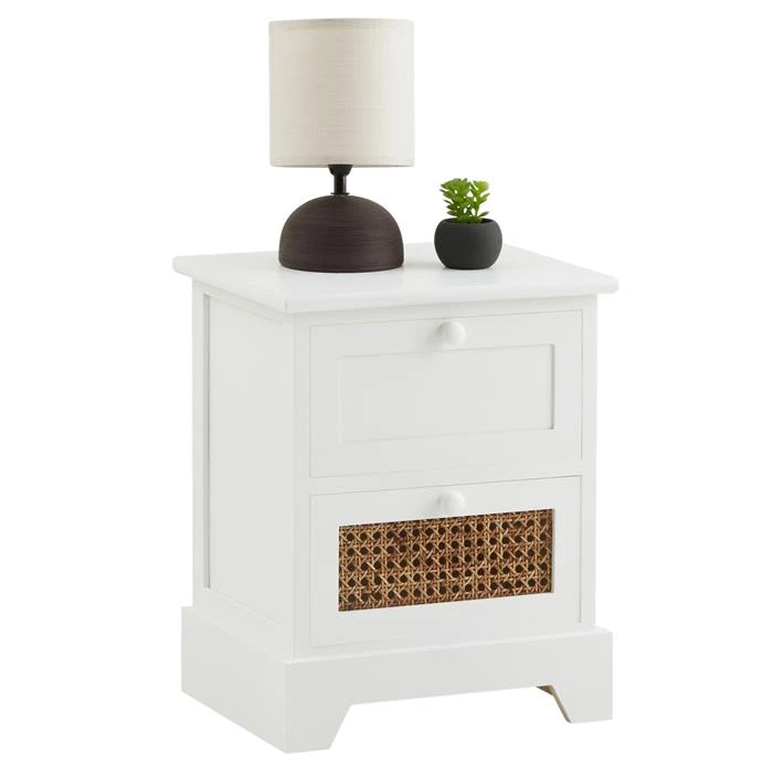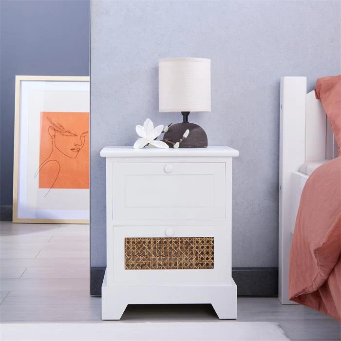 Nachttisch RANI Mit 2 Schubladen Und Wiener Geflecht, Weiß