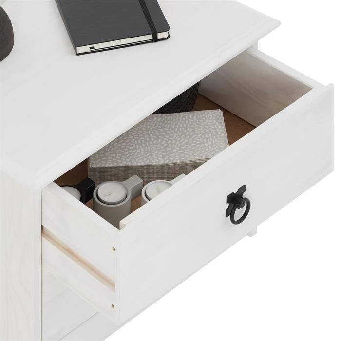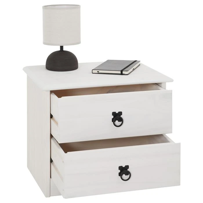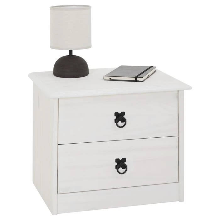 Nachttisch RESIDENCIA Kiefer Massiv Weiß, Mit 2 Schubladen
