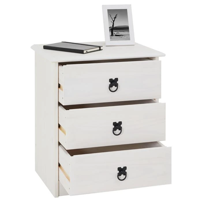Nachttisch RESIDENCIA, Kiefer Massiv Weiß, Mit 3 Schubladen