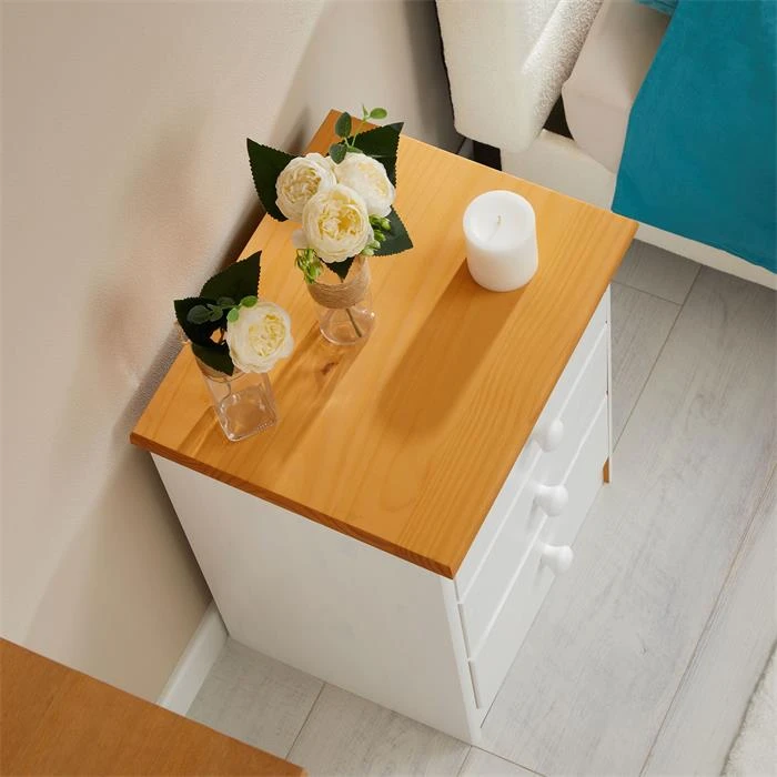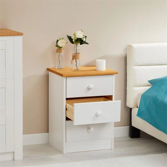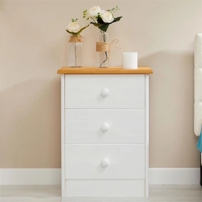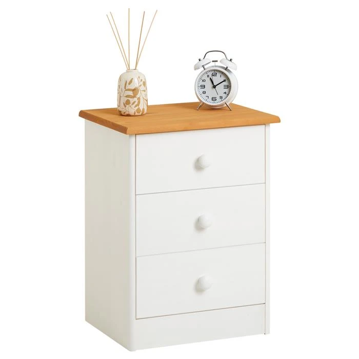 Nachttisch RONDO Mit 3 Schubladen, Kiefer In Weiß/braun