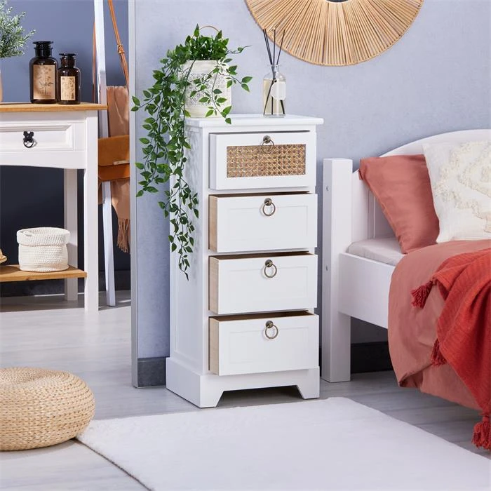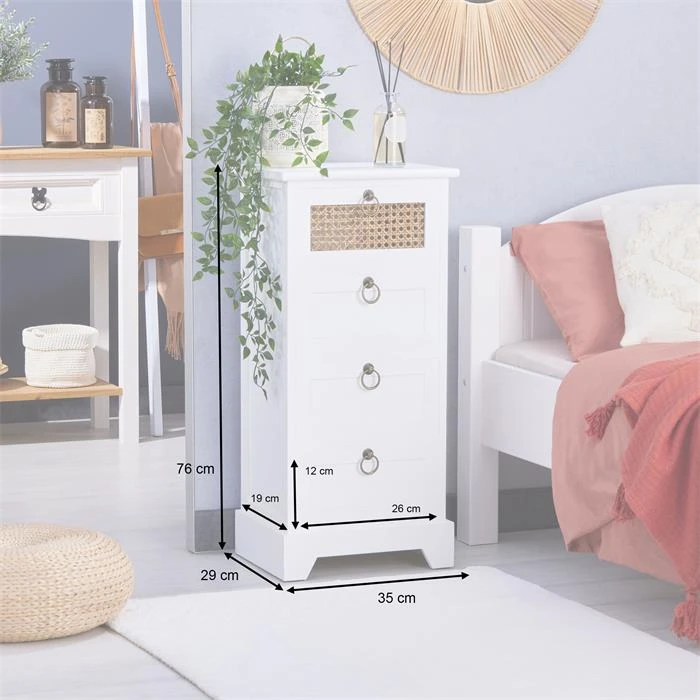 Nachttisch VANIKA Mit 4 Schubladen Und Wiener Geflecht, Weiß