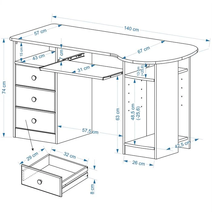 - Aufbaumaße: 140 x 74 x 67 cm (B x H x T)