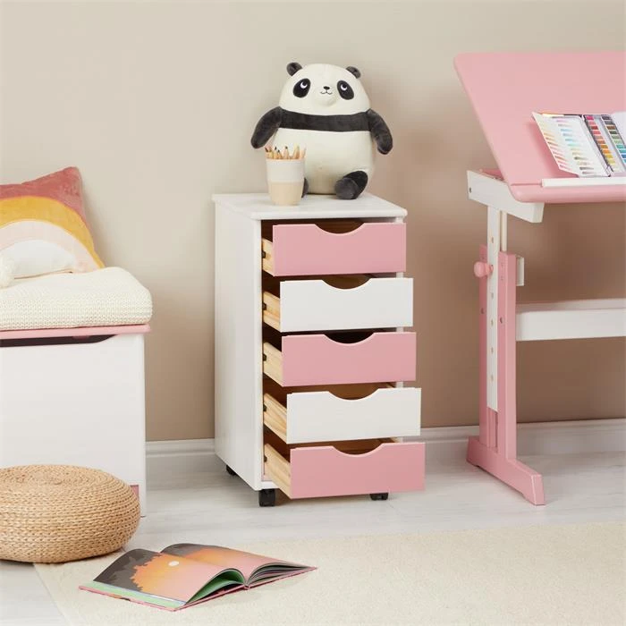Rollcontainer LAGOS Mit 5 Schubladen In Weiß/rosa