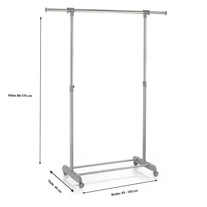 - Aufbaumaße Rollgarderobe: 93-155 x 96-170 x 44 cm (B x H x T)