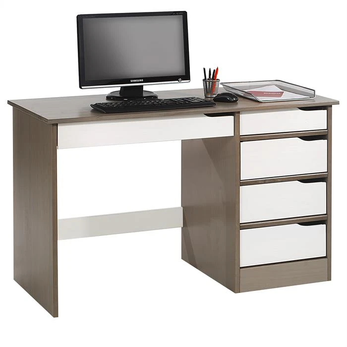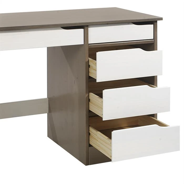 Schreibtisch HUGO In Kiefer Massiv In Taupe/weiß Mit 5 Schubladen