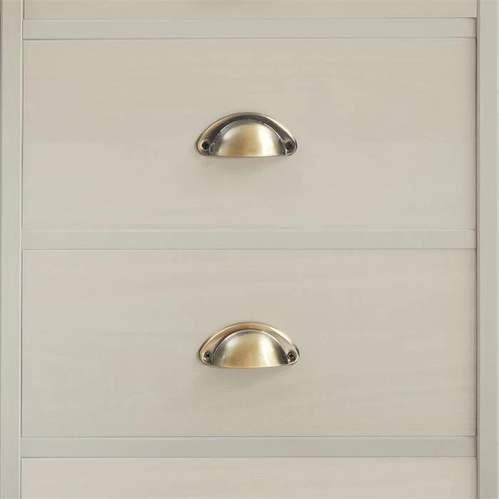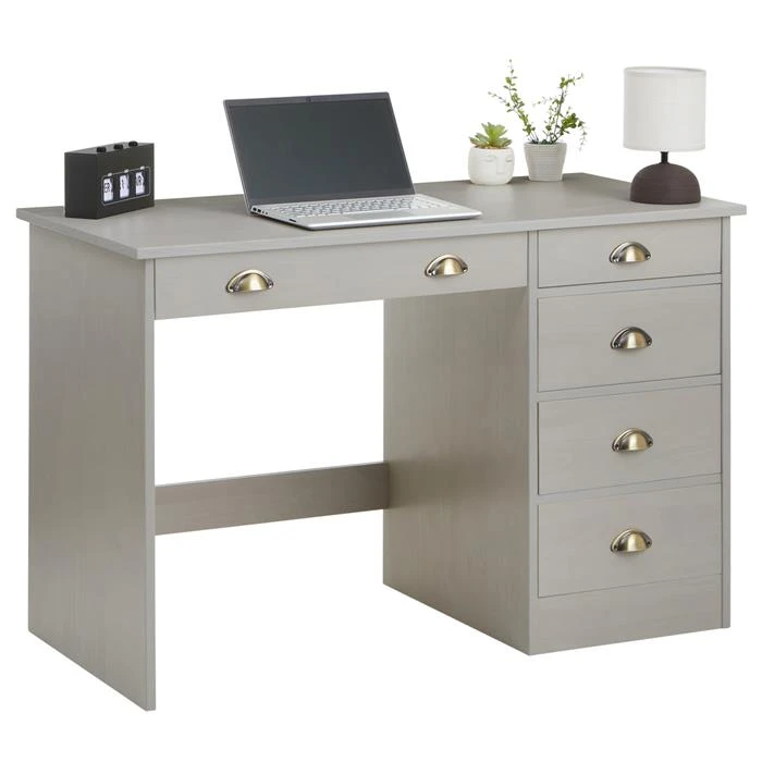 Schreibtisch LANA Aus Kiefer In Grau Mit 5 Schubladen Und Muschelgriffen