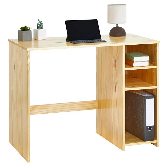 Schreibtisch LIAM Mit 3 Regalfächer Aus Kiefer Massiv In Natur