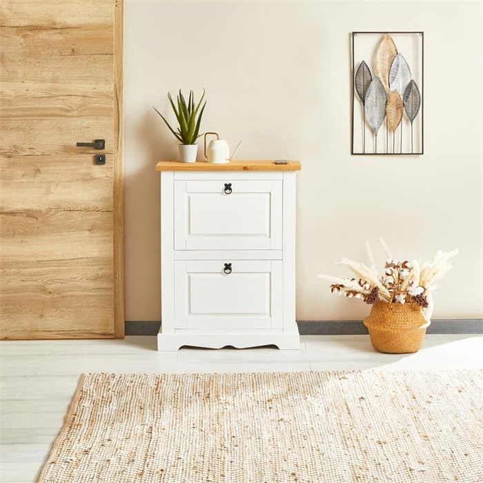 Schuhkipper TEQUILA, Kiefer Massiv, Weiß/braun, Mit 2 Klappen, Mexiko