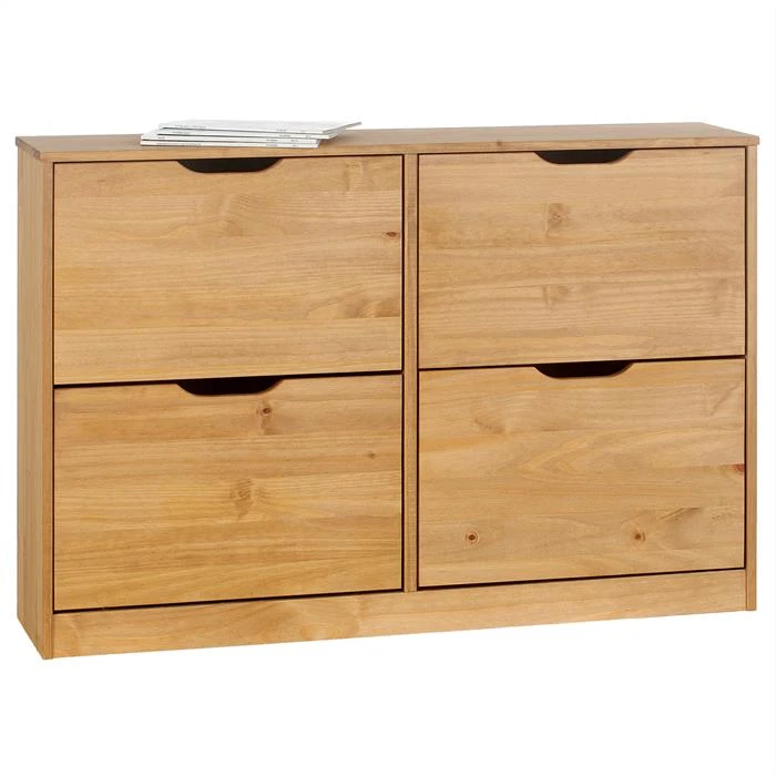 Schuhschrank BASIL Mit 2×2 Kippern In Honigfarben, Kiefer Massiv