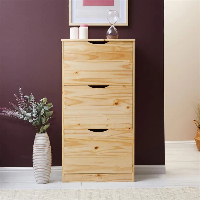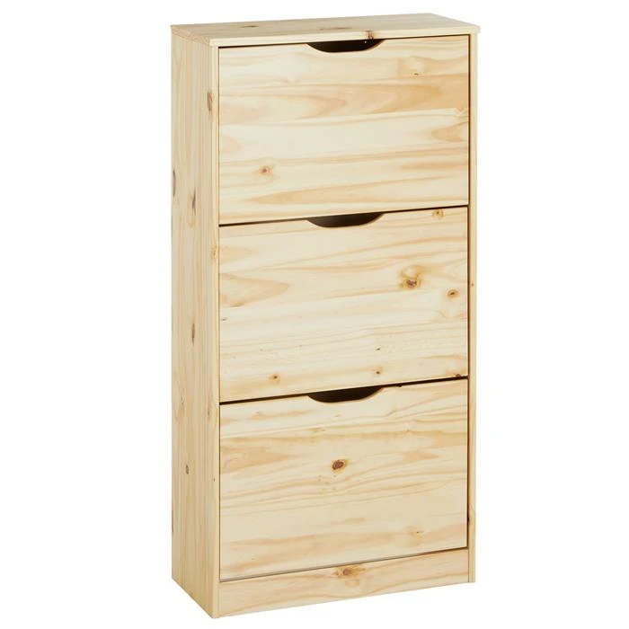 Schuhschrank BASIL Mit 3 Kipper In Natur, Kiefer Massiv