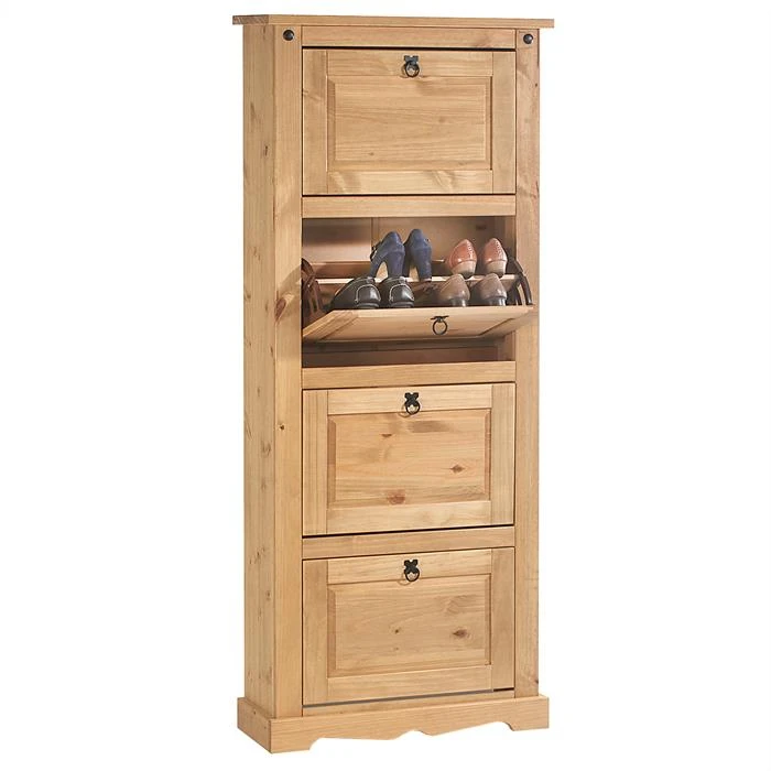 Schuhschrank TEQUILA, Kiefer Massiv, Mit 4 Klappen, Mexiko