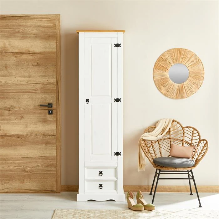 Schuhschrank TEQUILA, Kiefer Massiv Weiß/braun, Mit 2 Schubladen Und 8 Fächer, Mexiko