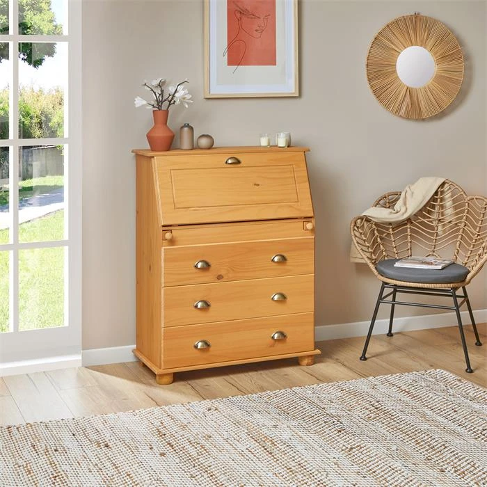 Sekretär GOMES Mit 3 Schubladen Und 2 Fächer Aus Kiefer Gebeizt
