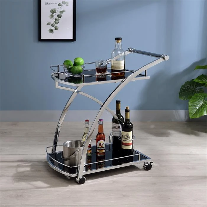 Servierwagen EVO In Schwarz Und Chrom